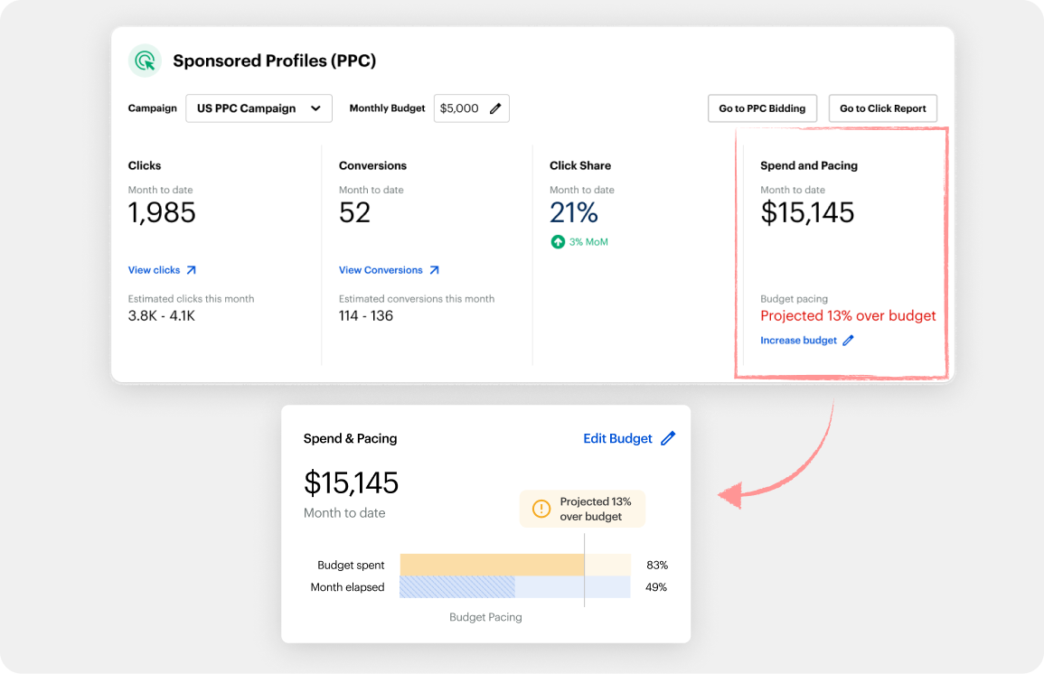 Spend and pacing is a critical part of the GDM model. It represents how much of a vendor's budget has been used at a given point in the month. If users spend too much too early or too little too late, they will not see the results they expect and may be less inclined to continue using the service.